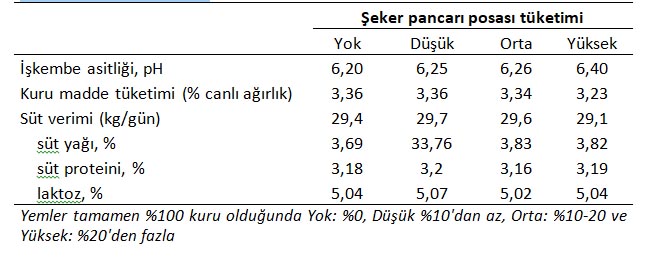 Dünyada birçok yayında şeker pancarı posası besi hayvanlarına günde 10-20 kg, süt ineklerine ise 20-30 kg yedirilebilir diye yazmaktadır. Bu miktar besleme Türk yetiştiricisi için çok yüksek olarak kabul edilebilir. Bizim üniversitelerimizde yapılan araştırmalarda da belirtilen rakamlarda besleme yapıldığında belirgin bir sıkıntı gözlenmemiştir. Şeker pancarı posası özel bir yem maddesidir, az yedirildiğinde midede sindirim ve problemleri düzeltebilir. Fazla yedirildiğinde ise değişik derecelerde asidozis denilen mide ekşimesine sebep olabileceği için sindirimi bozabilir, süt yağını düşürebilir. Şeker pancarı posasının rasyonlarda genellikle 5-10 kg arası yedirildiğinde midede sindirimin düzelerek dışkı cıvıklığının ve düşük süt yağı probleminin azaldığı gözlenmektedir. Özellikle soğuk havalarda hayvanı ısıtıcı özelliği olduğu da söylenebilir. Süt ineklerine şeker pancarı posası yedirilmesinin verim ve sütün yapısı üzerine etkileri aşağıdaki tabloda sunulmuştur2.